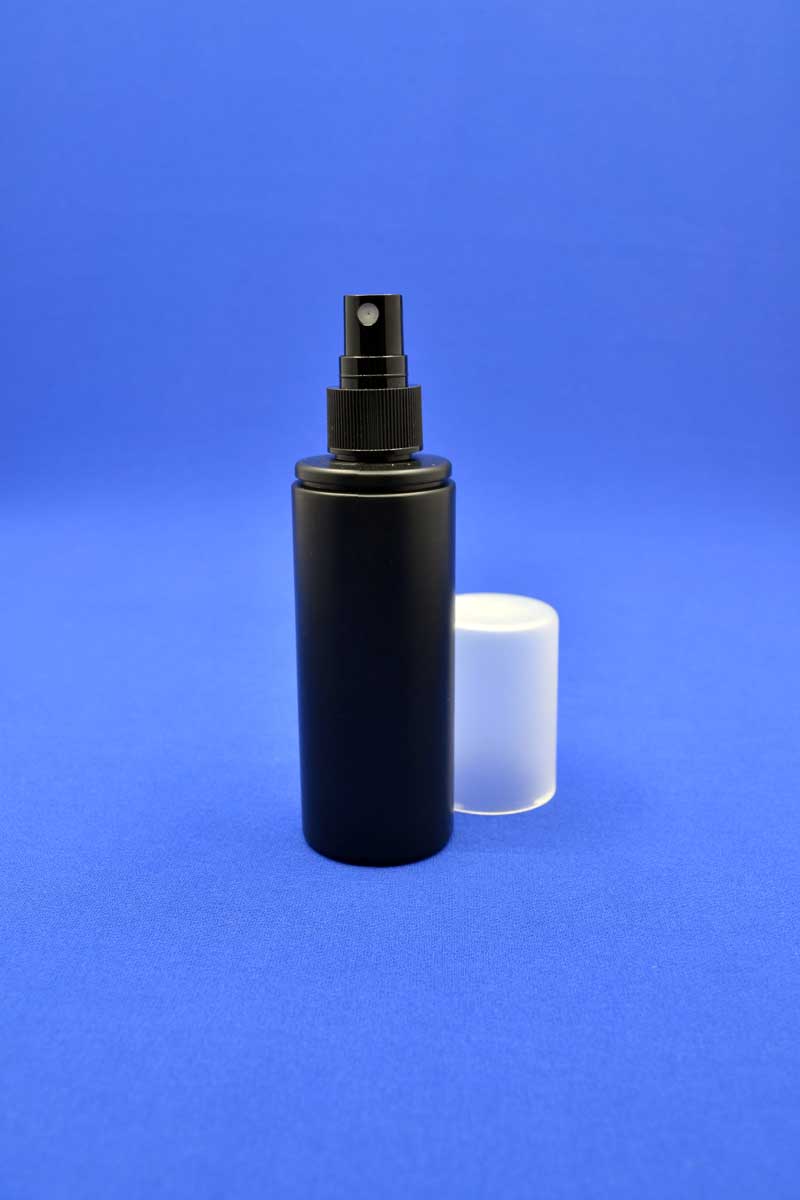 Пластиковий флакон 100 мл з кнопковим розпилювачем і прозорим ковпачком для упаковки рідких засобів косметичної, фармацевтичної продукції та побутової хімії.